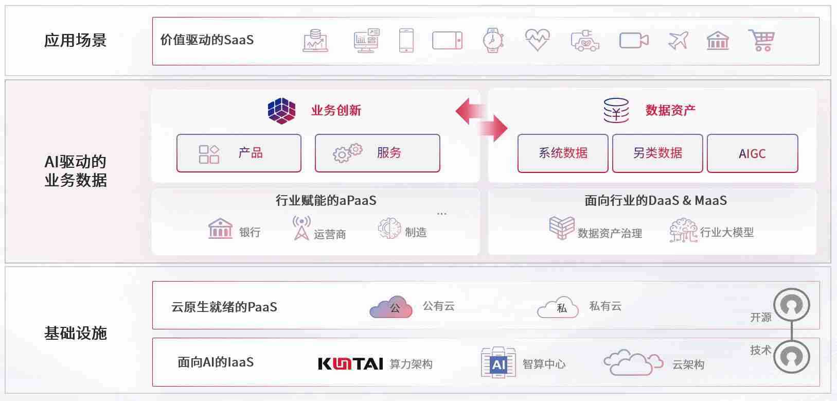 数字时代,,围绕企业数字化转型的关键要素,,,Z6尊龙数码开创性的提出数云融合战略和技术体系框架,,着力在云原生、、、数字原生、、、、AI原生和信创产业上架构产品和服务能力,,,,为处在不同数字化转型阶段的快消零售、、、、汽车、、金融、、、医疗、、、、政企、、教育、、运营商等行业客户提供泛在的敏捷IT能力和融合的数据驱动能力,,构建跨界融合创新的数字业务场景和新业务模式,,,助力企业级客户建立面向未来的核心能力和竞争优势,,,,全面推动社会的数字化、、、、智能化转型升级。。。